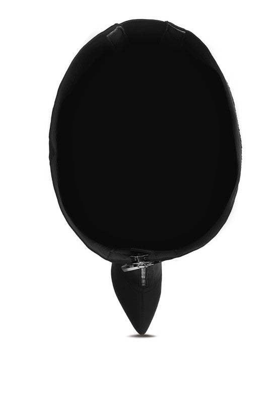 Block Heel Pointed Toe Long Boot with Metallic Zipper that runs through the height of the shoe - adds to the beauty. The super stretch boot fits well and keeps feet warm. It has elasticated gussets at the top which further adds to give you a good fit.